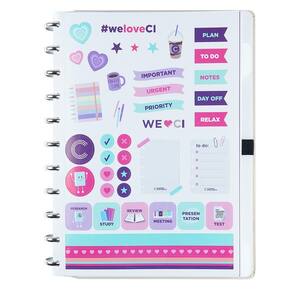 O modelo possui capa dura com acabamento percalux, que imita a textura de um couro sintético, discos metalizados com o centro transparente e elástico do mesmo tom da capa. É o match perfeito para quem gosta de funcionalidade e praticidade sem deixar o estilo de lado.