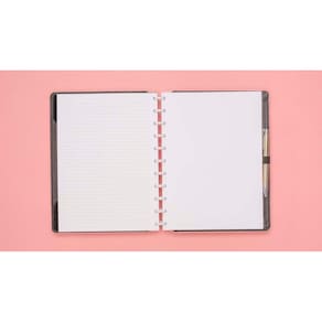 O caderno inteligente é produzido com materiais de alta qualidade que permitem remover e inserir as folhas com muita facilidade e segurança.