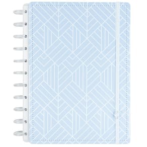 O que vem no produto: capa e contracapa rígidas na cor Ice Blue com sistema de 11 discos G (capacidade para até 150 folhas); 140 folhas offset 90g/m² (120 pautadas e 20 lisas); 10 divisórias com abas e página de índice; 1 folha de adesivos e 1 bolsa plástica; folha de identificação com calendário no verso; folha de instruções e dicas de acessórios; suporte elástico para 1 caneta ou lápis.