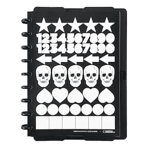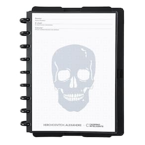 O modelo Black Ink traduz a sofisticação de uma moda que pensa, escreve e se manifesta com autenticidade. O icônico símbolo da caveira marca registrada do estilista ganha destaque em um refinado acabamento em baixo-relevo. Na contracapa, o detalhe em serigrafia se soma a adesivos exclusivos e ao design das folhas com moldura em preto, resultando em um Caderno Inteligente único e exclusivo.