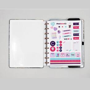 O Caderno Inteligente® Ônyx acompanha uma cartela de adesivos que são uma gracinha, para deixar o seu queridinho ainda mais fofo e divertido, com desenhos, marca páginas, lembretes e até um mini checklist.