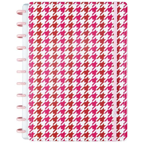 Descubra o Caderno Inteligente Paris, a solução perfeita para quem busca organização com estilo e praticidade. Com design exclusivo em padrão pied-de-poule nas cores vibrantes rosa e vermelho, este caderno é ideal para estudantes, profissionais e criativos que valorizam funcionalidade aliada à elegância.
