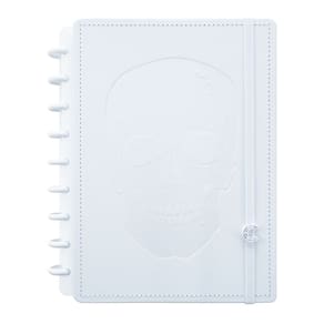 Descubra o Caderno Inteligente White Ink By Alexandre Herchcovitch, a união perfeita entre design exclusivo e funcionalidade modular para transformar sua organização diária. Com capa branca em material premium, traz um detalhe em relevo de caveira que imprime personalidade única e sofisticada, ideal para quem busca estilo e praticidade.
