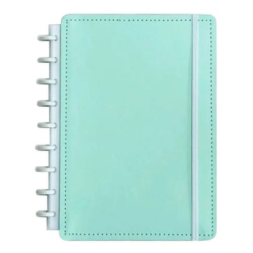 Caderno Médio 80 fls Verde Pastel Caderno InteligentePersonalize seu caderno - Folhas reposicionáveis- Capa e contracapa rígido- 1 Bolsa plástica- 1 folha de identificação com calendário no verso- 4 Divisórias com abas para identificação- 1 Suporte com elástico para caneta ou lápis- Discos M- Gramatura: 90g/m²- 60 folhas pautadas- 20 folhas lisa- Tamanho: 19x25,5cm