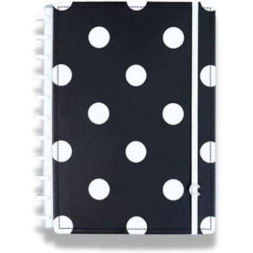 Caderno Médio Poá Vicky- Caderno Inteligente A5, Médio ou Grande: Capa e contracapa rígidas, 01 folha de adesivos, 01 bolsa plástica, 01 folha de instrução de uso e manuseio, com refis e acessórios da marca disponíveis no verso, 01 folha de identificação com calendário no verso, 04 divisórias com abas para identificação 02 pretas e 02 transparentes , 80 folhas offset 90g 60 folhas pautadas e 20 folhas lisas brancas para impressão , 01 suporte com elástico para 01 caneta ou 01 lápis e discos M + elástico.