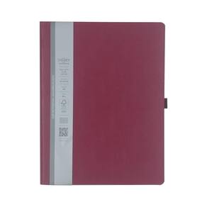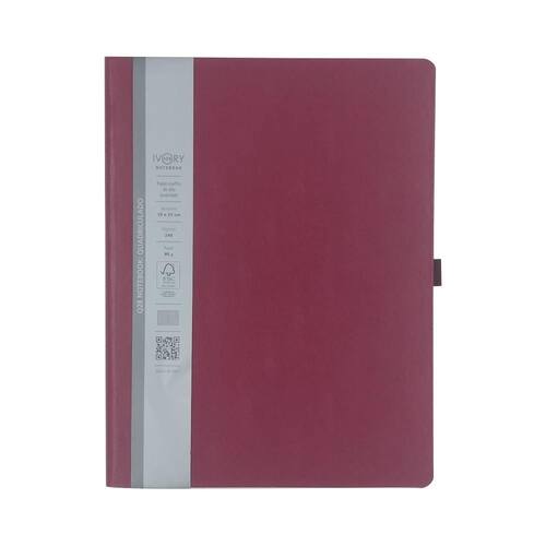 -capa envernizada com aparência de couro -cor da capa: Vinho -120 folhas quadriculadas em papel marfim 80g/m² -fechamento com elástico -fita marcadora -tamanho: 19,0x25,0x1,5 cm -referência: Q28G2-127V Ean: 7899014761778
