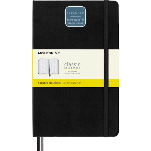Moleskine Caderno expandido clássico, capa dura, grande (12,7 cm x 21 cm) quadrado/grade, preto, 400 páginas - Caderno clássico Moleskine: os cadernos clássicos da Moleskine são cadernos perfeitos para escrever diários, um diário ou tomar notas em aulas ou reuniões da faculdade. Os cadernos Moleskine são amados por viajantes e jornalistas por seu design fino. - Capa durável e fecho elástico: mantenha projetos de escrita e notas em seu caderno Moleskine com uma faixa de fecho elástico e pastas de armazenamento internas. Capa Moleskine clássica semelhante a couro e páginas grossas de papel marfim são perfeitas para escrever com canetas-tinteiro. - Cadernos de qualidade para presente: agendas, diários e cadernos Moleskine vêm em capa dura ou capa mole e cores como preto, vermelho, azul, verde e marrom. A encadernação e a capa têm um acabamento durável, projetadas para diário, escrita e esboço. - Páginas de qualidade de luxo: as páginas grossas de papel marfim da Moleskine em um caderno Moleskine de capa dura, caderno Moleskine de capa mole, diário cahier ou volant ou agenda Moleskine são perfeitamente texturizadas para escrever com uma caneta esferográfica, caneta-tinteiro ou lápis. - MOLESKINE Qualidade: somos dedicados à cultura, viagens, memória, imaginação e identidade pessoal — tanto física quanto digital. Trazemos esse compromisso para nossos cadernos, bolsas, aplicativos, canetas inteligentes e notebooks.