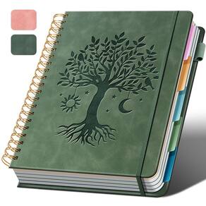Caderno espiral de capa dura de couro?A capa de couro resistente e impermeável evita que café e água encharquem as páginas internas, evita que as abas/páginas do caderno se dobrem e protege ainda mais suas notas importantes de reunião ou notas de estudo de trabalho. Design de inserção de caneta lateral para fácil acesso. 5 divisórias ajustáveis?Nosso caderno de 5 seções contém 5 divisórias de plástico removíveis, flexíveis e duráveis, permitindo que você se mova e organize como desejar. Ele pode ser dividido em 6 seções no total, com espaço suficiente para escrever assuntos diferentes e ajudar a organizar suas anotações de forma eficaz. Substitua um monte de cadernos espirais bagunçados e deixe sua mochila muito mais fina! CADERNO DE 300 PÁGINAS DE ESPESSURA?Caderno grande de 8,5 'x 11' com 300 páginas/150 folhas, você pode guardá-lo por muito tempo e reduzir o número de cadernos que precisa comprar! Páginas premium de 100 GSM de espessura para uma escrita mais suave e evitar vazamento de tinta ou formação de fantasmas. Caderno espiral universitário de 7,1 mm com colunas “clima”, “dia da semana” e “data” na parte superior de cada página para atender às suas necessidades diárias de anotações. A encadernação espessa em espiral dupla não é fácil de desmontar, é fácil virar as páginas. Certifique-se de que o caderno fique plano quando aberto, até mesmo pessoas canhotas podem escrever com facilidade. A faixa elástica de fechamento garante que o diário em espiral fique seguro quando fechado e também pode ser utilizado como marcador para acompanhar onde você escreve. O bolso traseiro expansível é perfeito para guardar notas extras, cartões ou outros itens importantes. CADERNO DE ESTUDO DE TRABALHO DE CAPA DURA?Este caderno espiral de 5 assuntos é perfeito para estudantes, profissionais ou qualquer pessoa que goste de escrever e precise mantê-lo organizado. Elegante com letras douradas estampadas, ela certamente iluminará sua mesa monótona e é um ótimo presente para organização do trabalho, volta às aulas ou registros familiares.