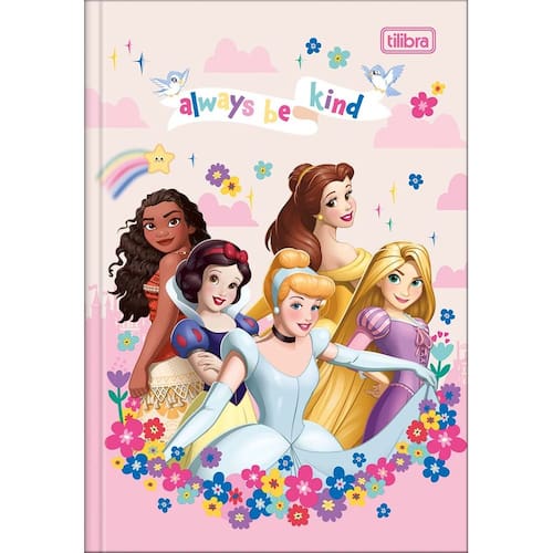 O Caderno Brochura Capa Dura 1/4 Princesas 80 Folhas possui capa dura com a parte interna decorada, folha dupla de adesivos e folhas pautadas. Ideal para o dia a dia na escola