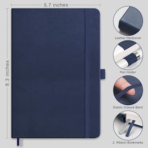 RETTACY Diário pontilhado, caderno pontilhado A5 com 256 páginas, 14 cm × 21 cm, tamanho médio, papel grosso de 120 GSM, capa dura de couro, diário de balas, planejamento, rastreamento (azul marinho) - Diário pontilhado de bala: o diário pontilhado RETTACY Bullet vem em tamanho A5 (14 cm × 21 cm), 256 páginas, capa dura de couro durável e suave, papel sem ácido 120 GSM, bolso interno, estênceis de diário de bala, 2 marcadores de fita e faixa de fecho elástico - Papel premium de 120 g/m2: o papel de 120 g/m2 é mais espesso e resistente, suportando o teste do tempo. Perfeito para anotar pensamentos, ideias ou memórias, nosso diário mantém suas palavras impecáveis. Use a maioria das canetas, lápis ou marcadores sem fantasmas ou vazamentos - Capa rígida de couro: a capa do diário RETTACY Bullet Dotted é feita de capa dura de couro liso, oferecendo uma proteção para suas preciosas entradas. Com esta capa requintada, você pode ter certeza de que seu diário será uma lembrança querida por muitos anos - Muitas páginas: com o dobro da contagem de páginas padrão, você terá amplo espaço para anotações, esboços, brainstorm, acompanhar o progresso e preservar memórias por muitos anos. Ideal para aqueles que exigem mais de sua experiência de diário - Aplicações versáteis: o RETTACY Bullet Dotted Journal simplifica pensamentos e ideias para artistas, planejadores, estudantes, profissionais por meio de diário com marcadores, esboços, planejamento, anotações, estudo e mapeamento mental, oferecendo apelo visual e eficiência