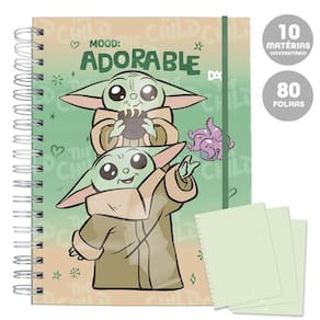 Caderno Smart Universitário 10 Mat 80fl Baby Yoda Star Wars Dac O caderno Smart em Wire-o é lindo, sofisticado e muito resistente, pois é de metal grosso e totalmente fixo com a capa, sem ficar balançando ou com o risco de cair e desmontar. Smart porque é versátil, é possível remover, acrescentar e reordenar as folhas sem qualquer dano a elas ou à estrutura do caderno. Tipo um fichário, mas muito mais fácil. O caderno conta com 80 folhas destacáveis e com a gramatura 90gr. A tinta da canetinha não vaza na folha seguinte na hora de colorir, além das divisórias. Formato: Universitário - 20 cm x 27,5 cm Detalhes: Com fechamento em elástico / 80 folhas com gramatura 90gr e 10 divisórias em papel, todas removíveis com a possibilidade de remanejar para onde quiser. COD: 4217