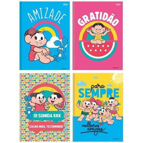Caderno Turma da Mônica Brochurinha 48 Fls - São Domingos Os cadernos em brochura 1/4 costurado Turma Da Mônica da Jandaia são produzidos em capa dura e apresentam estampas dos personagens. Conta com identificador e espaço para anotações, também conta com uma folha de adesivos lindos, além de folhas pautadas. Possui encadernação em brochura costurado, facilitando e garantindo maior segurança à rotina escolar das crianças. Com seu design super moderno, este caderno não poderá fica
