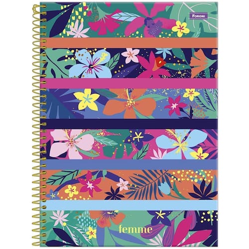 Inspirada na beleza da natureza, o caderno universitário capa dura femme é um respiro de ar fresco durante a rotina. Suas flores e folhagens harmônicas agradam facilmente diversos públicos. Detalhes: adesivo especial bolsa plástica espiral dourado formato: 200 x 275mm gramatura: 56 g/m guarda decorada hot stamping laminação fosca n de folhas: 160 10 matérias pauta estrela atenção: imagem meramente ilustrativa. Pode ocorrer mudanças no tom da cor para o produto real ou mudanças na embalagem sem aviso prévio por parte do fornecedor/fabricante.