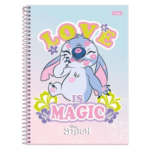 O stitch também conhecido como experimento 626 é um dos personagens mais queridos e divertidos do universo da disney. O caderno universitário capa dura busca retratar o personagem no mundo das redes sociais, com elementos e cores características em sua composição. Detalhes: adesivo especial bolsa plástica espiral lilás formato: 200 x 275mm gramatura: 56 g/m guarda decorada laminação fosca número de folhas: 160 10 matérias pauta decorada super hot stamping atenção: imagem meramente ilustrativa. Pode ocorrer mudanças no tom da cor para o produto real ou mudanças na embalagem sem aviso prévio por parte do fornecedor/fabricante