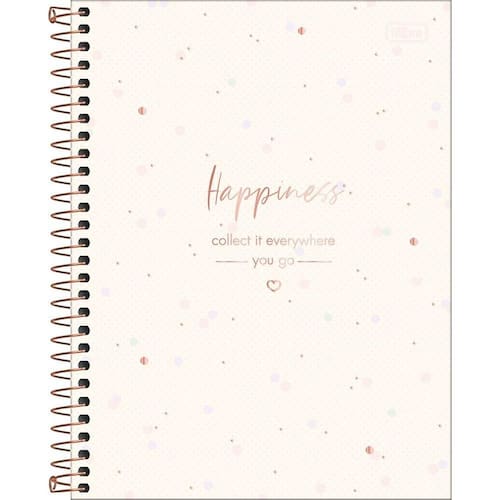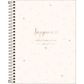 Características: Capa: Dura Espiral Rosé Folhas: Pautadas Formato: 20cm x 27,5cm Gramatura: 56 g/m Cartela de Adesivos Número de Matérias: 16 Matérias Número de Folhas: 256 Folhas Produto Certificado: FSC