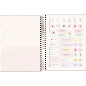 Características: Capa: Dura Espiral Rosé Folhas: Pautadas Formato: 20cm x 27,5cm Gramatura: 56 g/m Cartela de Adesivos Número de Matérias: 16 Matérias Número de Folhas: 256 Folhas Produto Certificado: FSC
