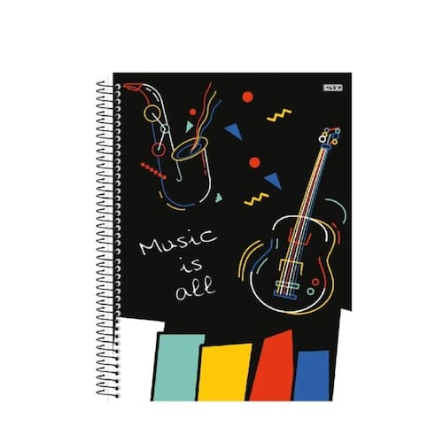 O Caderno de Música Espiral Universitário possui capa dura e folhas específicas para partituras. Ideal para atividades musicais.