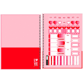O Caderno Espiral Capa Dura Universitário 1 Matéria Love Pink 80 Folhas possui capa dura com a parte interna decorada, bolsa de papel decorada para guardar trabalhos e anotações, folha com adesivos funcionais, folhas pautadas decoradas e espiral colorido. Ideal para o dia a dia na escola ou na faculdade.