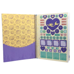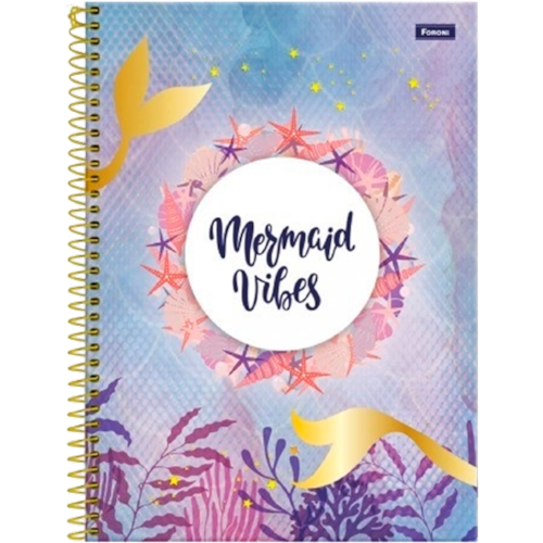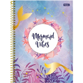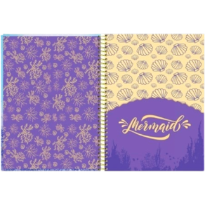 O Caderno Espiral Universitário Sereia possui capa dura com a parte interna decorada, bolsa de papel decorada para guardar trabalhos e anotações, folha com adesivos funcionais, folhas pautadas e espiral dourado. Ideal para o dia a dia na escola ou na faculdade.