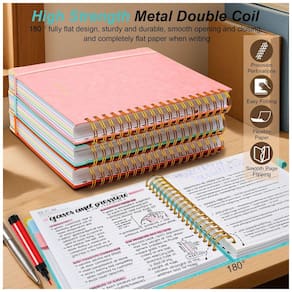 Este caderno universitário espiral GDGDSY em formato B5 8 x 10 reúne 5 seções em um único volume com 300 páginas pautadas, adequado para anotações de estudo, trabalho e planejamento pessoal. A capa dura em couro sintético com cantos metálicos dourados reforçados protege o conteúdo contra desgaste no uso diário.