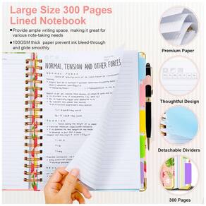Este caderno universitário espiral HDhuiun em formato 8 x 10 reúne 300 páginas pautadas distribuídas em 5 seções, adequado para anotações de estudo, trabalho e organização pessoal. A capa dura com estampa floral rosa é resistente ao uso diário e pode ser limpa com facilidade.