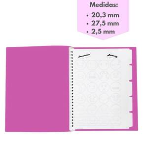 OBS.: Com prático sistema abre a fecha para trocar de refil de folhas.