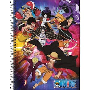 Caderno Universitário One Piece Tilibra Capa Dura Espiral - 1 Matéria 80 Folhas Personagens Fundo Colorido