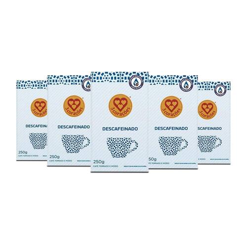 Café 3 Corações Descafeinado a Vácuo Kit 5 Pacotes 250g Sabor e tradição, agora sem cafeína