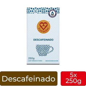Café 3 Corações Descafeinado a Vácuo Kit 5 Pacotes 250g Sabor e tradição, agora sem cafeína