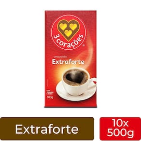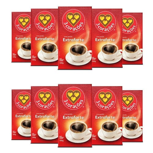 Café 3 Corações Extraforte a Vácuo Kit 10 Pacotes 500g Sabor intenso para momentos especiais