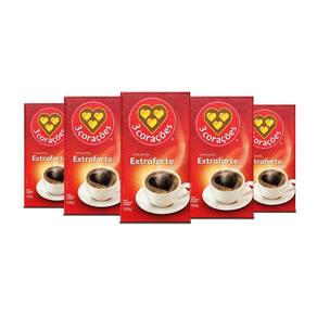 Café 3 Corações Extraforte a Vácuo Kit 5 Pacotes 500g Sabor intenso para momentos especiais