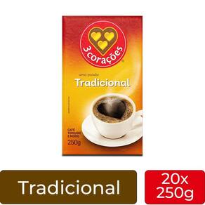 Café 3 Corações Tradicional a Vácuo Kit 20 Pacotes de 250g A tradição do café brasileiro na sua mesa