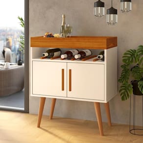 O novo Café Drink, em versão retrô e com portas é produto exclusivo Ofertamo, e com características próprias. Multifuncional, para você que adora modificar os ambientes da casa. Pode ser utilizado como aparador bar para servir e organizar seus drinks, copos e bebidas transformando sua sala em um bar completo, ou para organizar seu cantinho do café, seus espaços permitem uma melhor acomodação de utensílios e objetos. Estrutura em MDP de 12mm, adega para até sete garrafas, bandeja fixa, 2 portas e pés em madeira maciça Pinus. É um móvel surpreendente, que vai deixar o espaço muito mais charmoso e moderno.