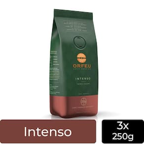 3 pacotes de café em grãos orfeu intenso 250g. Peso líquido total: 750g
