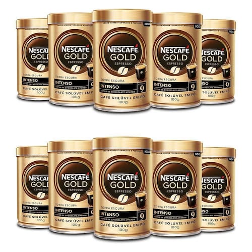 Café Solúvel NESCAFÉ GOLD Espresso Intenso Kit 10 Latas de 100g Uma Experiência Sofisticada de Café Solúvel