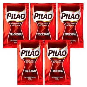 Café Torrado E Moido Pilão 250g Kit Com 5 Un. Tradicional Café Torrado E Moido Pilão 250g Kit Com 5 Un. Tradicional Marca: Não Informado Ean: 7894577801558
