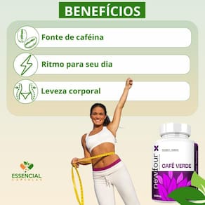 Café verde compre 2 leve 3 com total de 180 capsulas Bem vindo a à essencial cápsulas Aqui, acreditamos que cuidar da saúde pode e deve ser algo natural, leve e diário. Produto: Café verde 60 cápsulas Marca: New four Benefícios: Fonte natural de cafeína. Pode ser incluído em rotinas focadas no estilo de vida ativo. Muito utilizado em hábitos alimentares equilibrados e estratégias de bem-estar. Sugestão de consumo pelo fabricante : 02 cápsulas ao dia Ingerir com 200ml de água Importante saber: Este produto é um suplemento alimentar natural. Não é e não substitui uma alimentação equilibrada nem o acompanhamento de um da saúde. Como um produto natural, seus benefícios podem ser vistos a partir de alguns dias do uso. Os suplementos são destinados a pessoas saudáveis. Sua finalidade é fornecer nutrientes, substâncias bioativas, enzimas ou probióticos em complemento à alimentação. Composição: Extrato de café verde. Não contém glúten Contraindicação: O uso não é recomendado para gestantes, lactantes e crianças. Em caso de uso contínuo de medicamentos ou condições específicas de saúde, busque a orientação de um da saúde. Qualidade: Sabemos que o mercado de suplementos é competitivo, com opções para todos os públicos e faixas de preço. Na nossa loja, priorizamos a qualidade em cada detalhe. Por isso, escolhemos trabalhar apenas com fábricas que utilizam matérias-primas de excelência e seguem rigorosos padrões de produção. Enviamos rapidinho: Seu pedido é preparado com todo cuidado e postado em até 24 horas úteis após a confirmação da compra. na maioria das vezes, enviamos bem antes disso Fale conosco: Tem dúvidas ou quer conversar sobre o produto Nosso atendimento é humanizado e está sempre pronto para te ouvir com muita atenção Marca: Não Informado