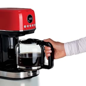 Cafeteira da Linha Moderna para preparar um delicioso café coado a qualquer hora do dia. Defina a distribuição do café através do visor LCD e espere que o café seja distribuído. Graças à base com aquecimento, seu café permanece quente até que você queira servi-lo. Com um único ciclo você pode servir até 15 xícaras de café graças à alta capacidade da jarra de vidro temperado. O nível da água é visível e os filtros são removíveis para garantir uma limpeza fácil e eficaz.