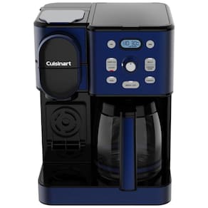 A Cafeteira Automática de 12 Xícaras com Jarra de Vidro Quente e Gelada, Cor Azul Cuisinart é a escolha perfeita para os amantes de café que desejam personalizar a sua bebida. Com a tecnologia Extreme Brew, você pode preparar uma panela cheia de café 25 vezes mais rápido do que com outras cafeteiras. Além disso, a cafeteira oferece a opção de preparar uma única xícara de café quente em tamanhos de 5 xícaras com qualquer cápsula ou com o filtro HomeBarista reutilizável. Você também pode preparar café gelado, para desfrutar de uma bebida refrescante em dias quentes.