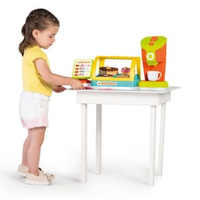 Cafeteira Coffe Center infantil c/ doces, luzes e somÉ hora do café!Que tal servir deliciosos doces recheados de imaginação acompanhados de um expresso quentinho?Com a Coffee Center, os pequenos desenvolvem habilidades através da interação, e comunicação.É uma cafeteria completa, vem com uma estufa recheada de docinhos e duas xícaras, e um painel que gira 360° para brincar de comprar e vender.E tem mais! Para a brincadeira ficar ainda mais divertida, é só abastecer a cafeteira com água e brincar de fazer café expresso.Além disso, tem luz e som como em uma máquina de verdade!Tateti, divertido é brincar junto.Contém:1 Cafeteira2 Xícaras1 Estufa5 LanchesEspecificações:Idade: +3anosMarca: Calesita (TaTeTi)Material: PlásticoAlimentação: Pilhas inclusasMedidas da embalagem (CxLxA):55x17x27cmCom Luzes: SIMCom Som: SIMAs cores dos tecidos e produtos podem variar entre as imagens mostradas acima ou fotos da embalagem. Imagens meramente ilustrativas.