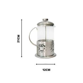 Cafeiteira de prensa francesa em inox com copo de vidro, alça em inox com detalhes na parte que envolve o copo estamapada. O modelo de prensa francesa é muito sofisticado e facilita na preparação de inúmera bebidas, não apenas o café. Ideal também para capuccinos, cremes, leite cremoso, chocolates e demais bebidas de acordo com seu gosto e preferência.