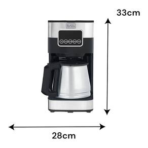 Cafeteira Elétrica Digital Black+Decker CM350G-BR 127V Praticidade e sabor em cada xícara! A Cafeteira Elétrica Digital Black+Decker CM350G-BR foi desenvolvida para quem aprecia um café sempre fresco, quente e saboroso.Com design moderno e painel digital, ela une tecnologia, praticidade e elegância, tornando o preparo do café ainda mais fácil e rápido no dia a dia. Características Técnicas: Modelo: CM350G-BR Marca: Black+Decker Tensão: 127V Potência: 900W Capacidade: Até 30 xícaras (1,2L) Cor: Preta e Inox Filtro permanente removível: Sim Jarra: Vidro resistente com medidor de nível Painel digital: Com display e funções programáveis Placa aquecedora: Mantém o café quente após o preparo Função Timer: Permite programar o preparo do café com antecedência Desligamento automático: Mais segurança e economia de energia Diferenciais: Programável: Tenha seu café pronto na hora que desejar. Filtro lavável: Dispensa o uso de filtros de papel. Sistema corta-pingos: Permite servir o café mesmo durante o preparo. Placa aquecedora antiaderente: Mantém o café quente sem alterar o sabor.Fácil de limpar: Peças removíveis e jarra de vidro resistente.