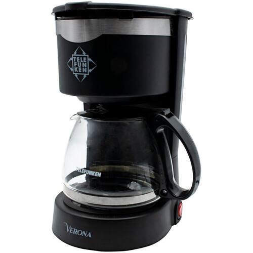 Cafeteira eletrica 0,6 litros verona 110v - tfverona Cafeteira elétrica 0,6 litros verona 110v - tfverona A cafeteira elétrica verona prepara até 5 xícaras de café e tem capacidade para 600 ml de água. O porta filtro removível e lavável facilita a limpeza e economiza filtro de papel. Possui função anti-gotejamento que evita vazamento na hora de retirar a jarra de cafeteira. A placa de aquecimento mantém o café quentinho e saboroso por muito mais tempo.
