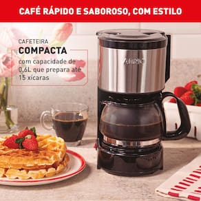 Com design compacto e acabamento moderno em inox, acompanha filtro permanente e colher medidora, tornando o preparo do café diário mais simples e eficiente.