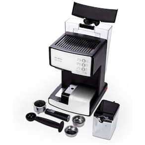 Cafeteira Elétrica Barista 3 em 1 Semiautomática Mr. Coffee com sistema de bomba de 15 bar, espumador de leite automático, painel de controle de um toque e reservatórios removíveis de água e leite.Pressão