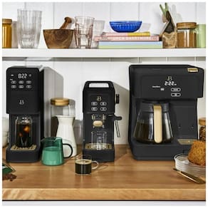 Marca: Beautiful (linha Multi-Brew) ?Modelo: MultiBrew19615 Tipo de produto: Cafeteira elétrica de gotejamento multi-preparo Cor: Preto Capacidade da jarra: 12 xícaras Tipo de café: Café em pó e cápsulas de dose única compatíveis Modos de preparo: Café quente e café gelado (Iced Coffee Mode) Dimensões do produto (P x L x A): 31,1 cm x 36,2 cm x 28,6 cm Peso do produto: 6,2 kg Tensão: 110V ?Tipo de operação: Totalmente automática com painel touch Funções do painel: Timer, preparo programável, início automático, manter aquecido, desligamento automático Acabamento externo: Fosco soft-touch com detalhes metálicos Tipo de jarra: Jarra de vidro com cabo e tampa Filtro: Cesto de filtro reutilizável (compatível com filtros de papel) Entrada de café: Pó e cápsulas de dose única Uso indicado: Uso doméstico, escritório, uso diário e preparo de café gelado Ambiente de uso: Interno Itens inclusos: Unidade da cafeteira, jarra de vidro, cesto de filtro reutilizável e manual de instruções Manual do usuário: Inglês Marca: Não Informado
