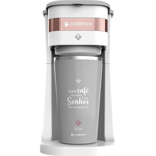 Acorde para correr arás dos seus sonhos com a nova Cafeteira Dream Cadence. Todo o sabor e o aroma de um café fresquinho, fácil de preparar e fácil de levar para onde você quiser, com o toque exclusivo rosé gold. Com copo térmico que mantém a temperatura do café, com tampa de segurança e base antiderrapante. É o seu café, facinho, facinho, onde você quiser.