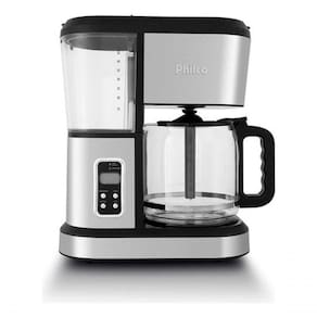 Obs: Caixa aberta com todos acessorios. Produto nunca foi . Cafeteira Elétrica Philco PCF50PDI Design Inox, ideal para tornar sua rotina mais prática com rendimento de 45 cafés. A jarra graduada é fabricada em vidro e o reservatório de água tem capacidade para 1,8L. A peça nas cores preto e cinza conta com sistema High Flow, display digital com relógio, função Bold para intensificar o sabor do café, sistema soft drop (tubo interno na jarra) que proporciona melhor sabor, aroma e temperatura, timer programável para preparo do café com até 24 horas de antecedência, sistema corta-pingos e placa de aquecimento para manter o café aquecido após o preparo.ESPECIFICAÇÕES:Modelo: PCF50PDI Inox e Preto 110 VPotência: 1000WCARACTERÍSTICAS:Material da jarra: VidroRendimento: 45 CafésSistema de suprimento: Café em PóCapacidade do Reservatório de Água: 1,8LFunção BoldSistema soft dropTimer programávelDesligamento automático após 2 horasLuzes de funcionamento e display com luz de fundoFiltro permanente e porta filtro removívelPlaca de aquecimentoSistema corta-pingosBase antiderrapanteAcabamento em inoxDIMENSÕES E PESO:Altura: 35 cmLargura: 29 cmProfundidade: 18 cmPeso: 2,34 kgO QUE VEM INCLUSO?Cafeteira Design Inox PhilcoColher dosadoraFiltro permanenteManual do usuário