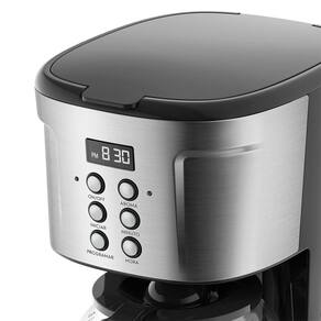 Características: Acabamento em Aço Inox Escovado Aroma Strength? Timer 24 Horas Painel Digital Corta Pingos Filtro Permanente e Removível Capacidade para 38 Cafezinhos Função Manter Aquecido Desligamento Automático Jarra de Vidro de 1,5L Indicador do Nível de Água