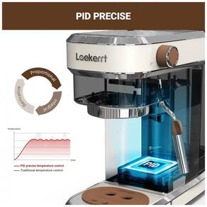 EXTRAÇÃO EXPRESSO PROFISSIONAL Equipada com bomba de pressão de 20 bar de fabricação italiana para um expresso perfeito. Todos os sabores são prolongados uniformemente durante a extração. A alta estabilidade garante sempre o equilíbrio perfeito e um espresso com sabor suave. TEMPERATURA PERFEITA Equipada com chip de controle preciso da temperatura PID, mantém a máquina em temperatura estável e adequada para a extração do café. Ele também fornece a melhor temperatura para a formação de espuma de leite fácil. BASTÃO AJUSTÁVEL DE LEITE O poderoso bastão de espuma de leite em aço inoxidável pode ser ajustado para atingir o estado ideal para iniciantes. Ele fornece vapor suficiente para criar uma espuma rica, densa e cremosa que permite a você produzir latte art e um cappuccino perfeito em casa. INICIANTES AMIGÁVEIS As máquinas de café expresso acionadas por bomba são significativamente mais eficientes e produzem um café expresso melhor. A pressão e a temperatura perfeitamente ajustadas garantem a estabilidade para o seu café diário. E é fácil realçar o sabor fazendo latte ou cappuccino com o espumador de leite ajustável de aço inoxidável. RECURSOS ADICIONAIS Design elegante com manutenção simples. O Laekerrt CMEP01 se adapta a vários tipos de tamanho de xícara e é fácil de limpar. Você pode dobrar seu expresso com um simples toque no botão de seleção de dose. O aquecedor de chávenas adicional permite lhe desfrutar do café acabado de fazer à temperatura certa